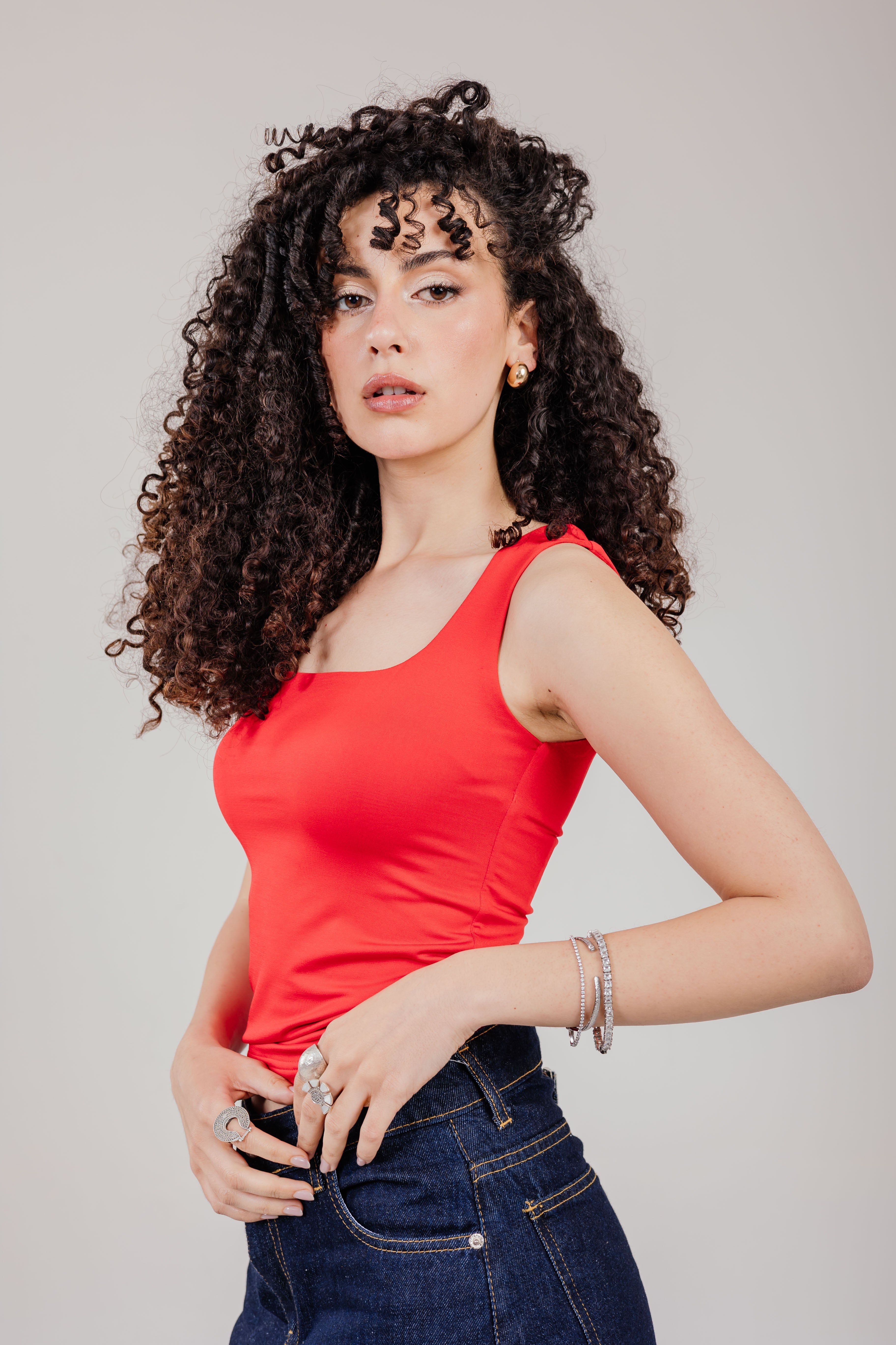 This square-neck tank is made from soft, stretchy fabric that shapes and smooths without feeling tight. Minimal, flattering, and perfect for layering or styling solo.