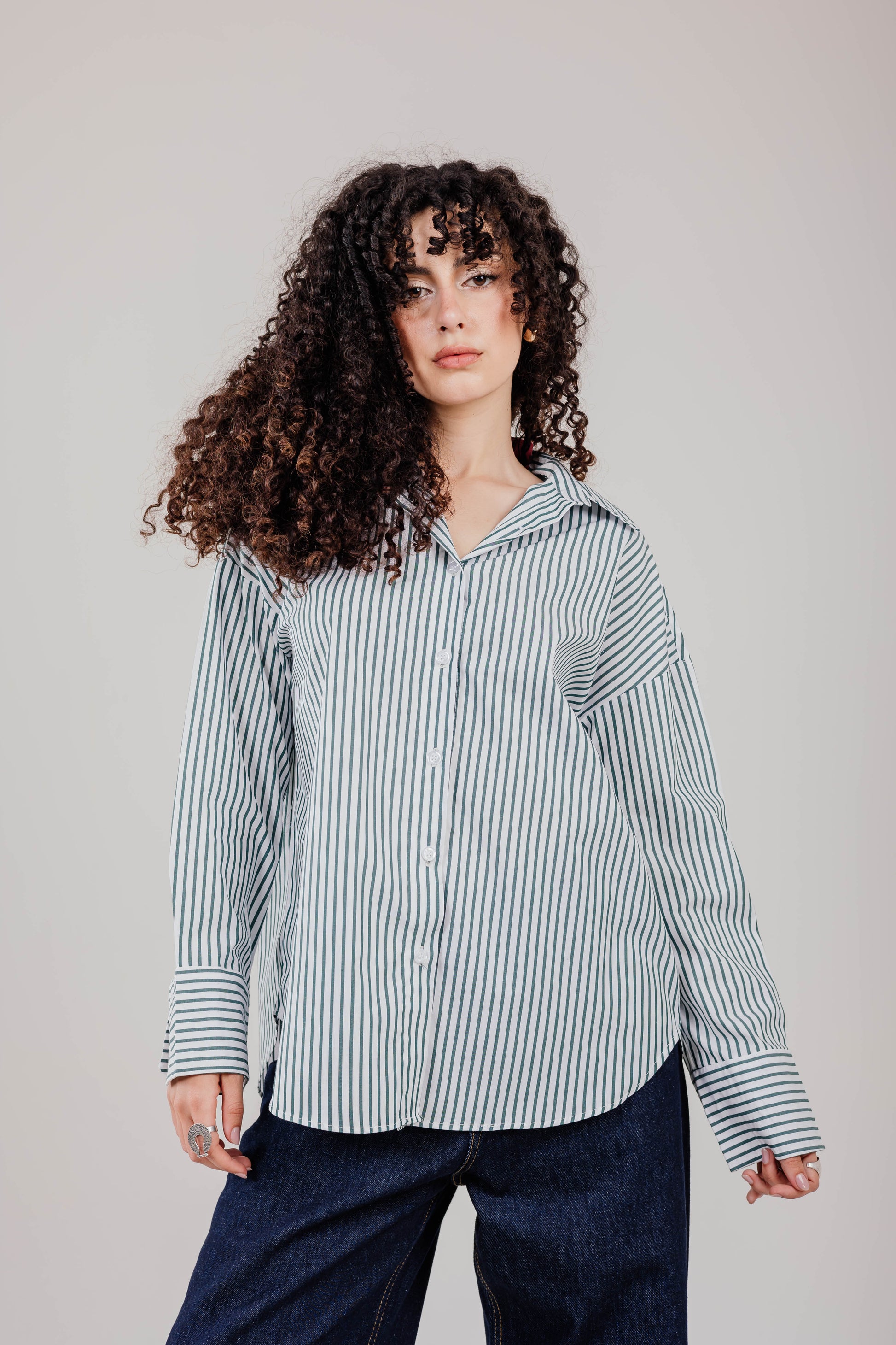 Introducing Poblin's White Shirt with olive Stripe, crafted from high-quality cotton poplin. This shirt provides a comfortable and breathable fit, perfect for all-day wear. The classic red stripe design adds a touch of elegance to any outfit. Upgrade your wardrobe with this timeless piece.