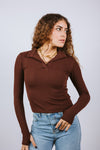 Elevate your wardrobe with this chic V-neck top featuring long sleeves and a unique thumb loop design. The lightweight, breathable fabric ensures comfort and a flattering fit, while the elegant thumb detail adds a modern